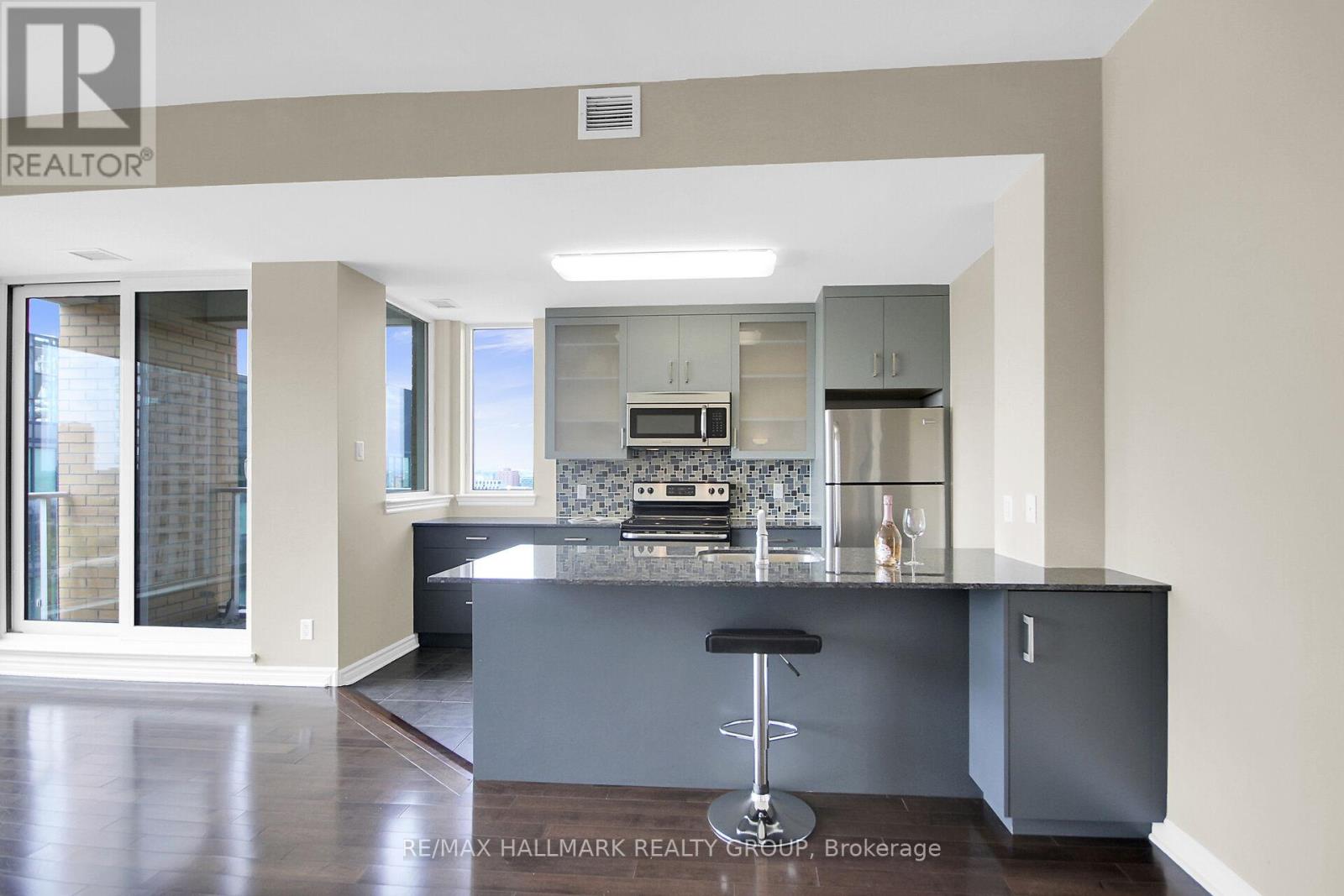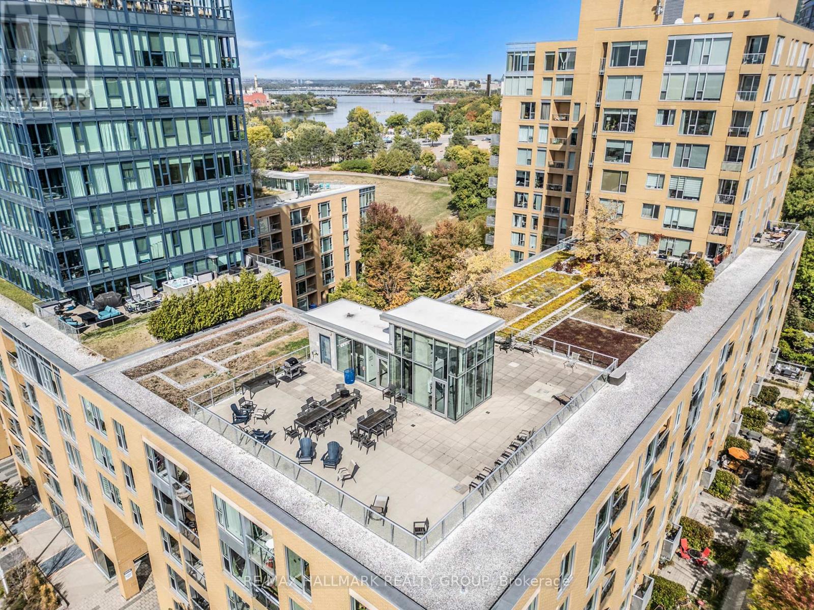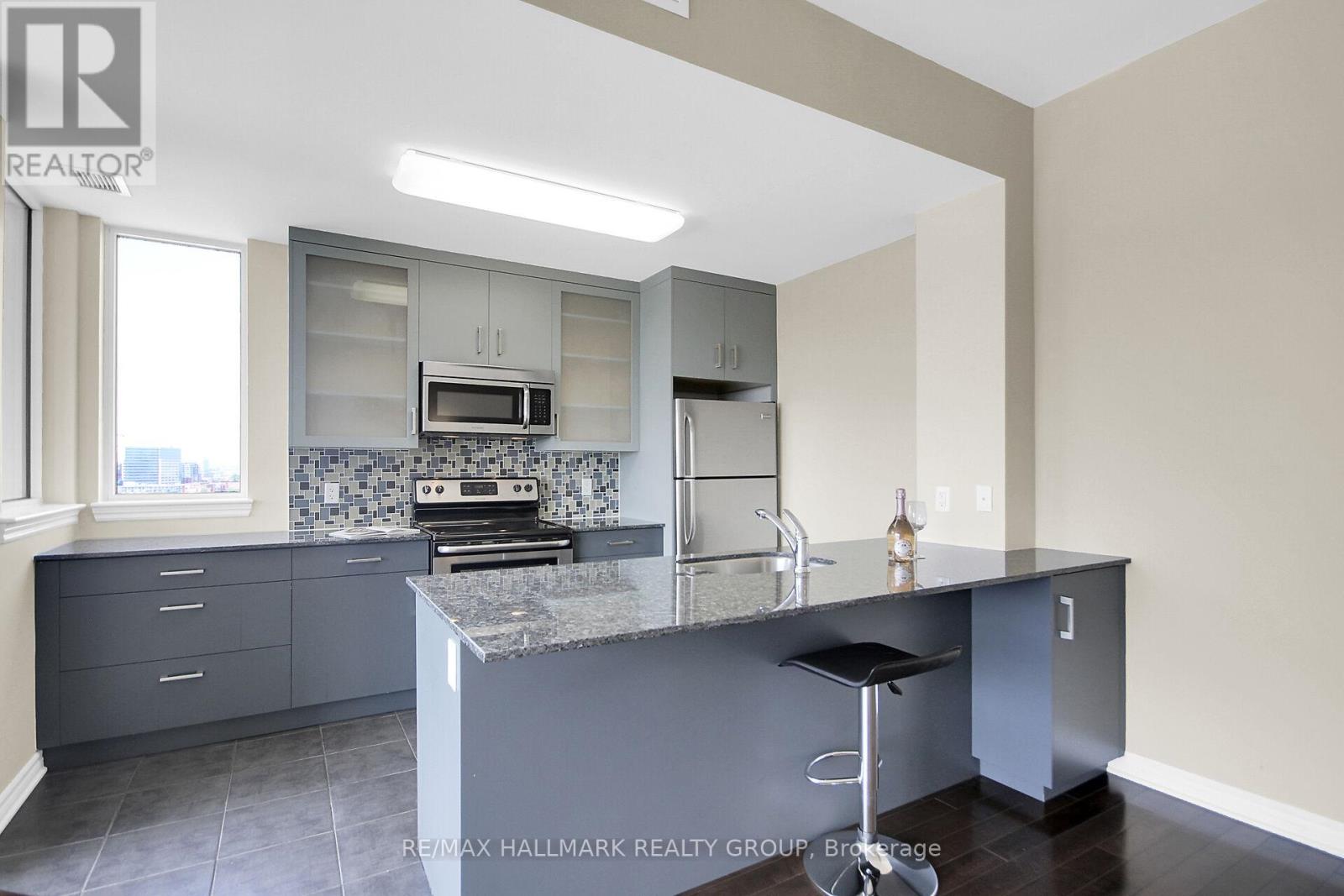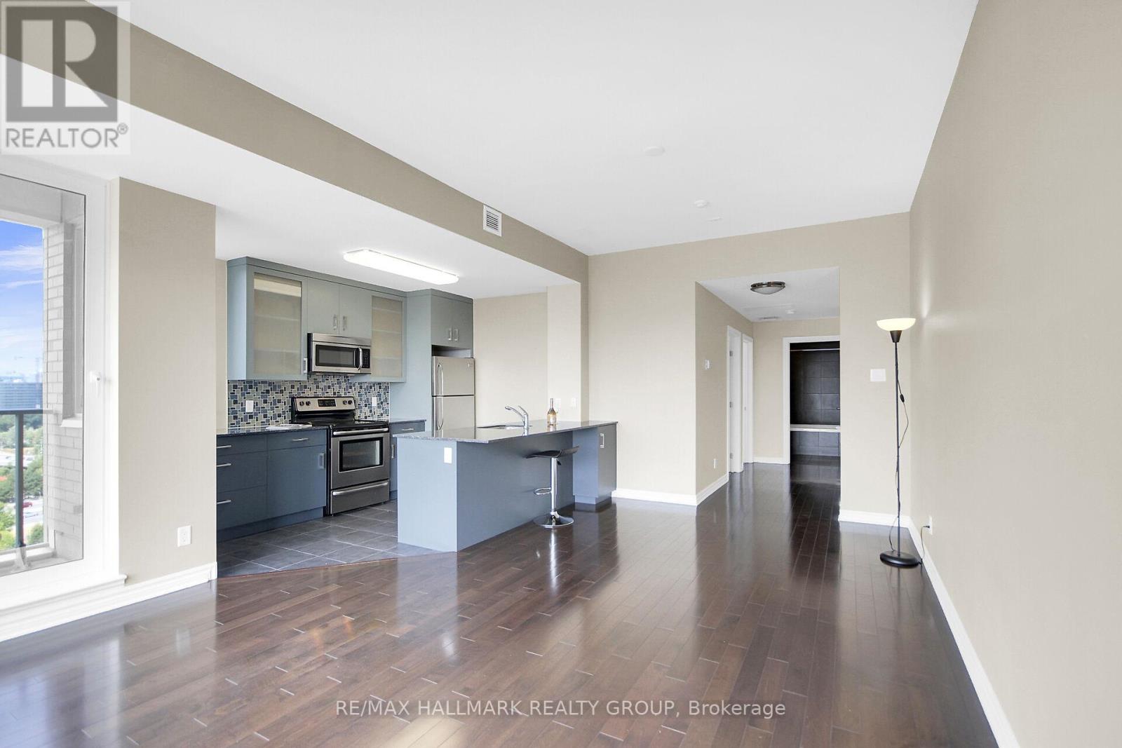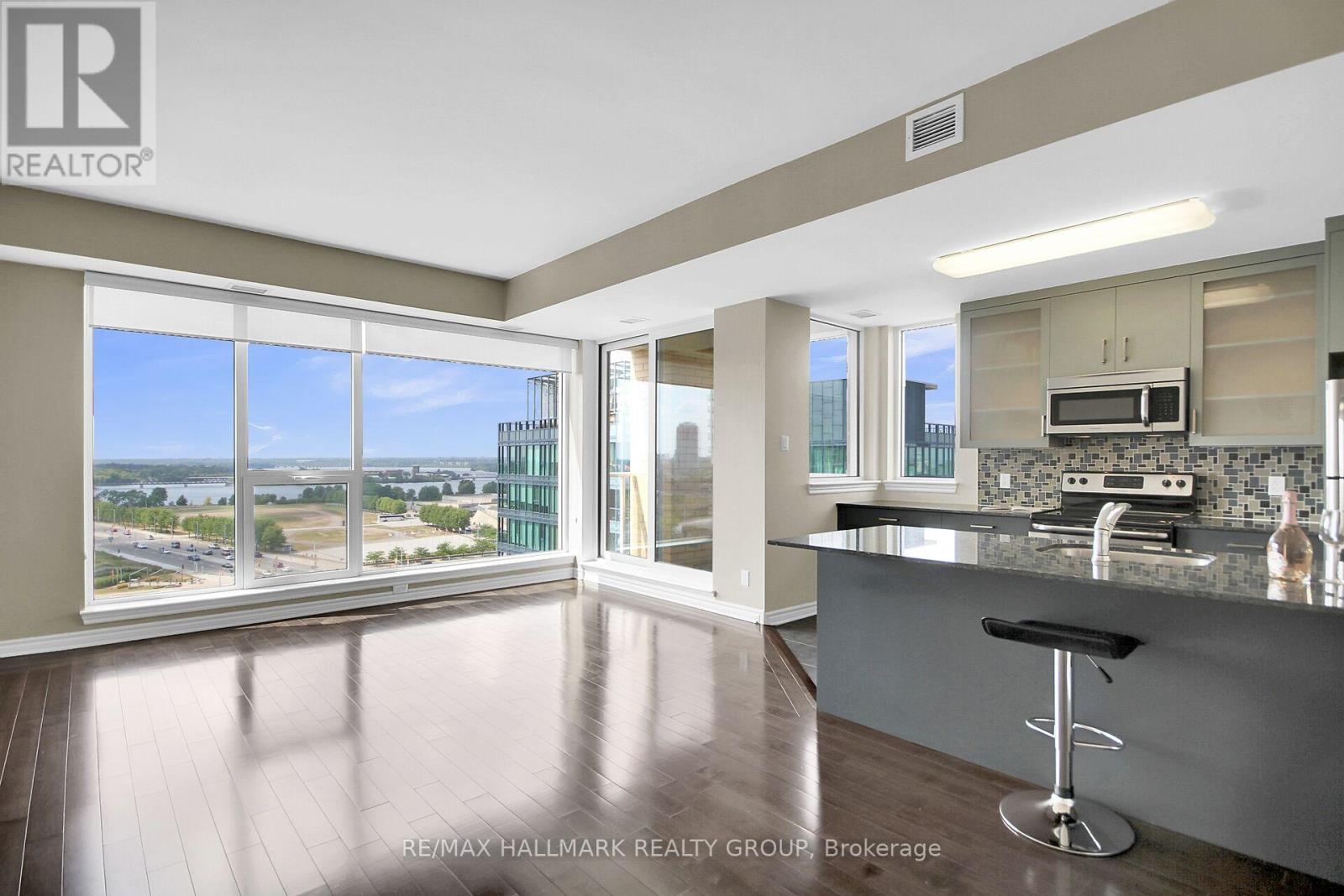 Location, Scenic River Views, and Unmatched Convenience! This penthouse offers the best of Ottawa living steps away from Parliament Hill, the Ottawa Public Library, the Canadian War Museum, and the exciting Bluesfest grounds. Excellent transportation options, including the Pimisi LRT station, are just around the corner.Directly beside the Ottawa Pumphouse Kayak Pavilion, residents can enjoy front-row views of paddlers on the river as well as a unique connection to the waterfront lifestyle. The buildings shared grounds feature a beautifully landscaped garden and fountain, creating a serene escape right outside your door.Enjoy top-tier building amenities, including a rooftop terrace with barbecues, a fitness centre, a recreation room, and an indoor pool. This penthouse also comes with a dedicated indoor parking space and a storage locker.This stunning top-floor penthouse boasts 982 sq. ft. of living space in the vibrant LeBreton Flats community. The open-concept layout features two bedrooms, one bathroom, and in-unit laundry. The living and dining areas showcase hardwood floors and floor-to-ceiling windows, flooding the space with natural light and showcasing sweeping river and city views. The primary bedroom includes a walk-in closet and a four-piece ensuite.The contemporary kitchen offers a large sink, pot drawers, and ample cupboard and counter space. Open to the living room, its perfect for entertaining.An active lifestyle awaits with cycling, jogging, and walking trails right along the river, plus easy access to nature paths and green spaces. Dont miss the opportunity to invest in this rapidly growing neighbourhood!Some photos are virtually staged. (id:4069)